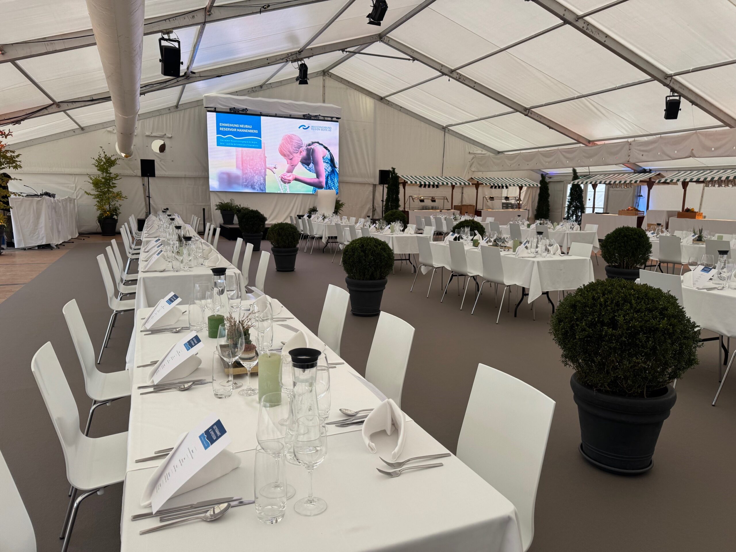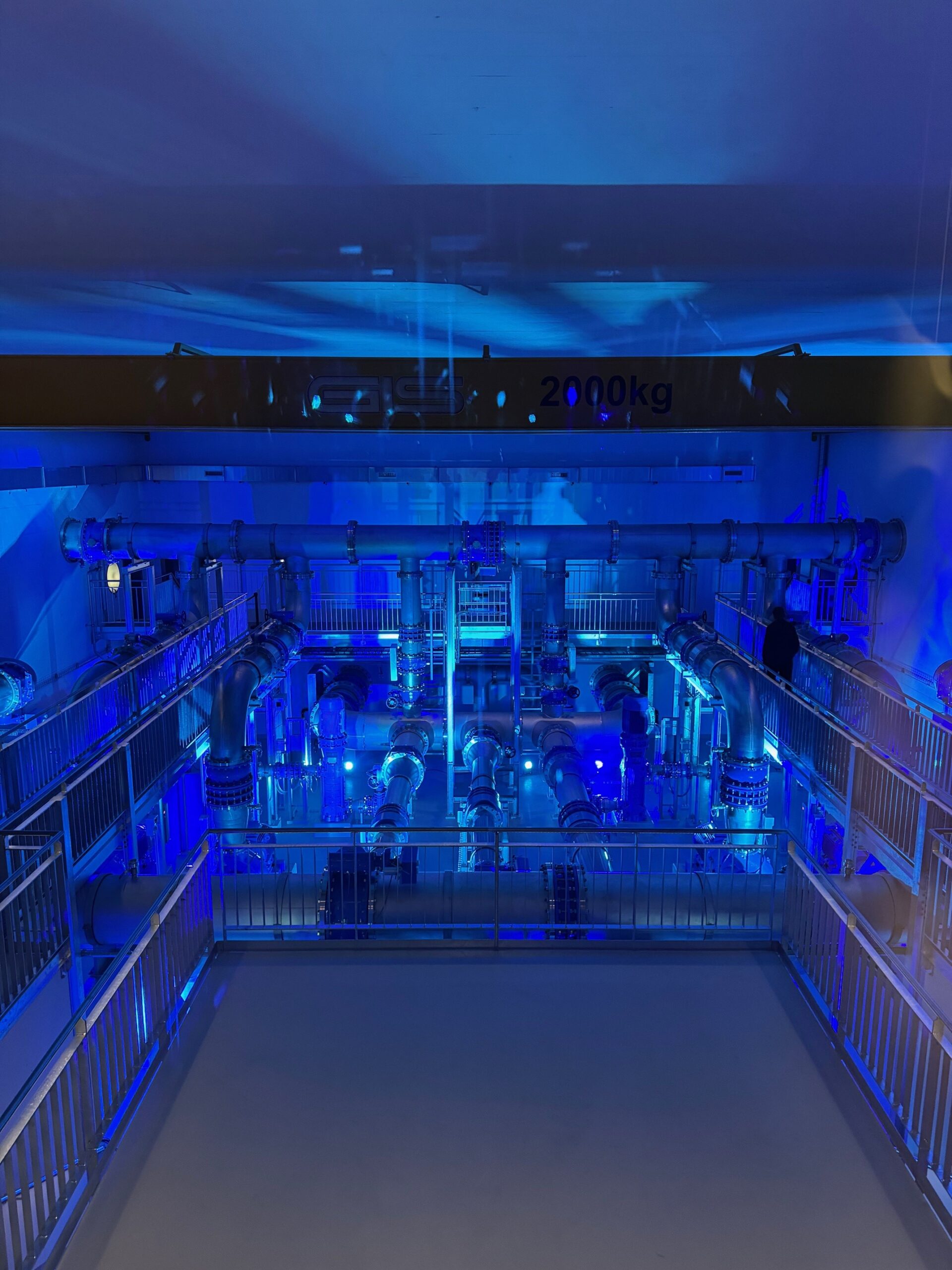 Zur feierlichen Eröffnung des neuen Wasserreservoirs Mannenberg durften wir ein ganz besonderes Highlight beitragen: eine atmosphärische Lichtinstallation, die das Innere des Reservoirs in eine geheimnisvolle Unterwasserwelt verwandelte.