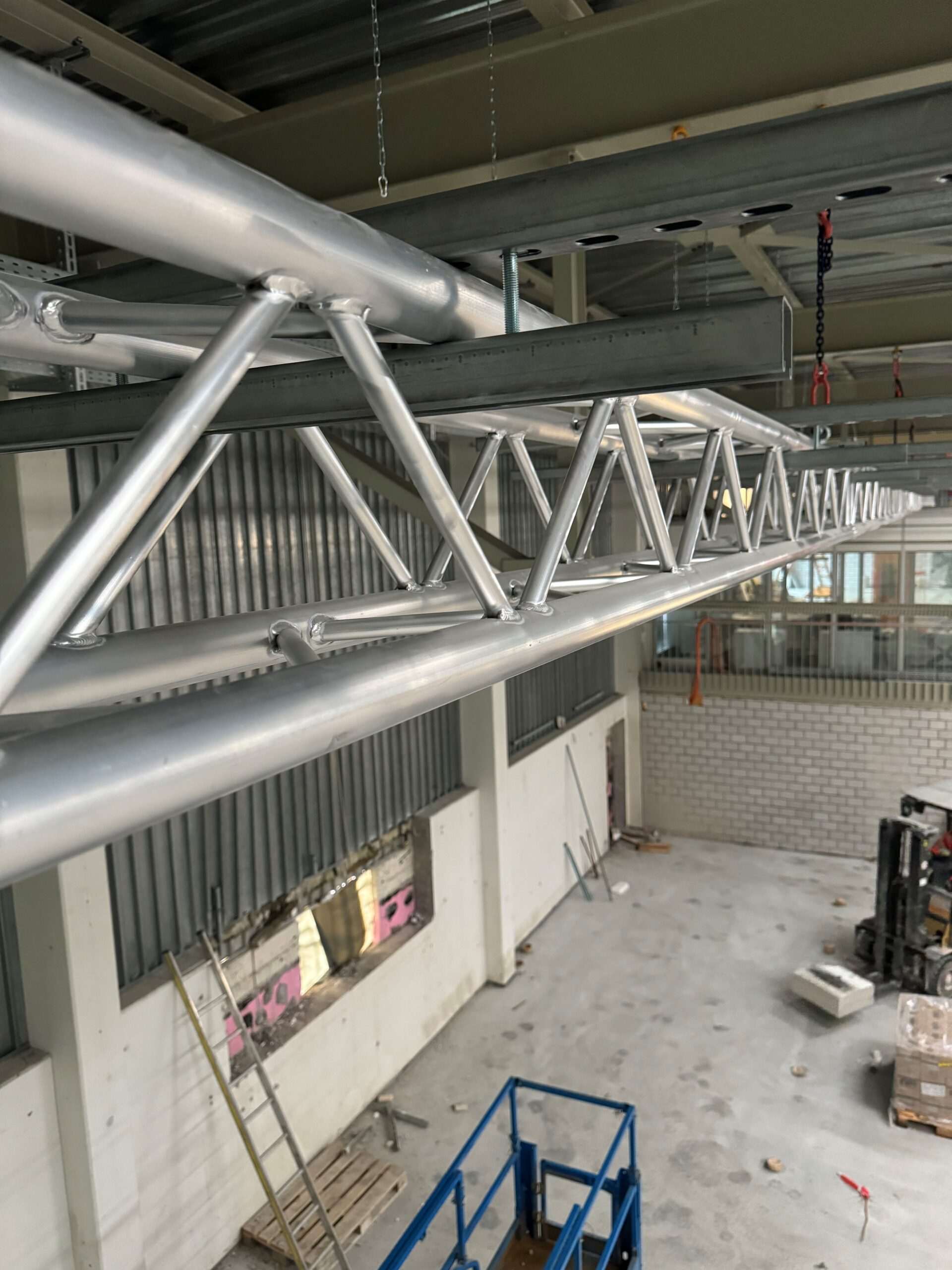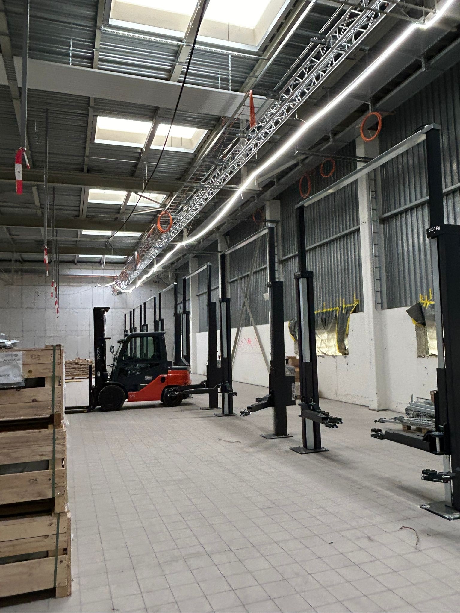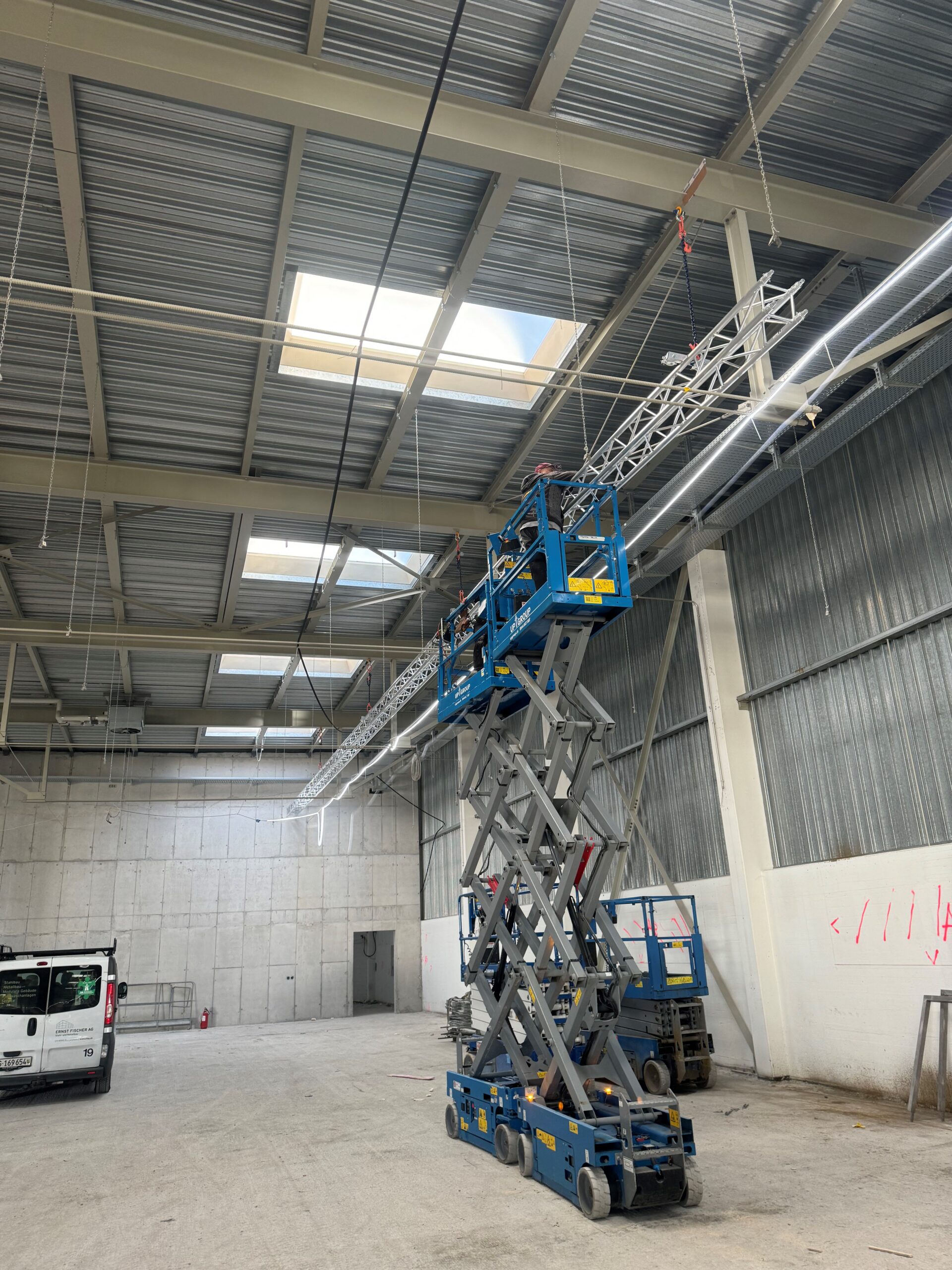 Für die Hedin Automotive in Dielsdorf durften wir über 150 Meter Aluminium-Traversen installieren. Die Werkstatt sowie die Karosserie- und Lackierabteilung wurden umfassend renoviert und modernisiert. An den Traversen wurden Abroller für Druckluft, 12V Stromversorgung und 230V Anschlüsse für verschiedene Werkzeuge angebracht.