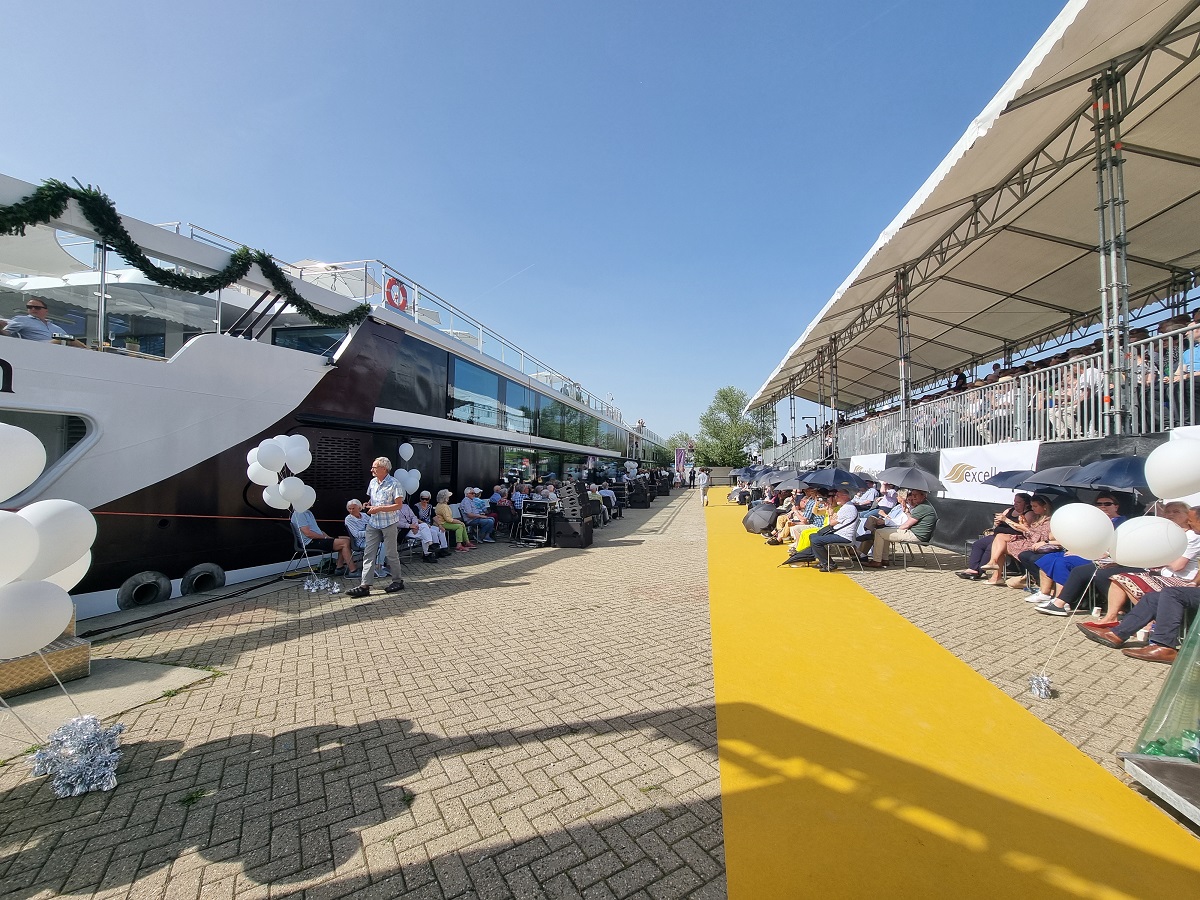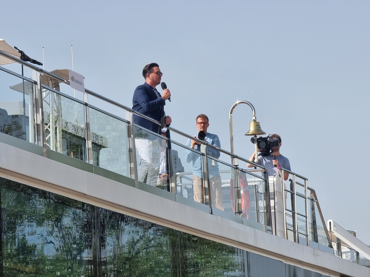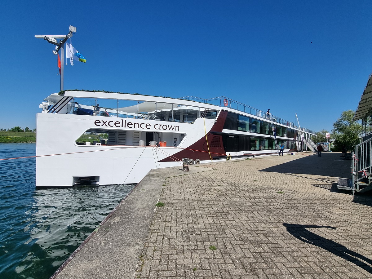 Die feierliche Schiffstaufe der Excellence Crown fand am Anleger Klybeck in Basel statt. Über 650 geladene Gäste nahmen an diesem besonderen Anlass teil, bei dem das neue, umweltfreundliche Flussschiff offiziell in Dienst gestellt wurde. Die bekannte Schweizer Starköchin Tanja Grandits übernahm die Rolle der Taufpatin und zerschlug traditionell eine Champagnerflasche am Bug des Schiffes.