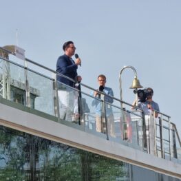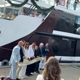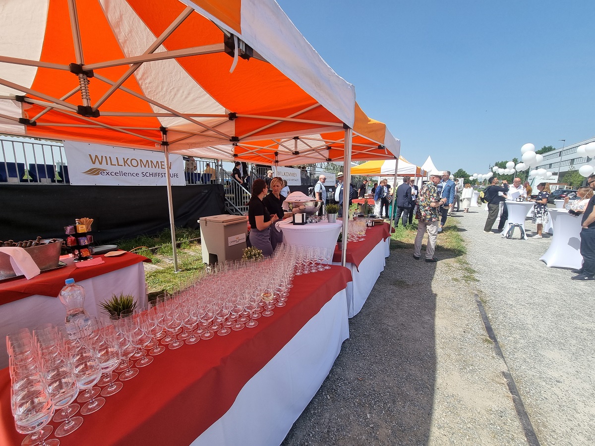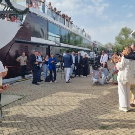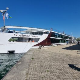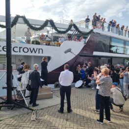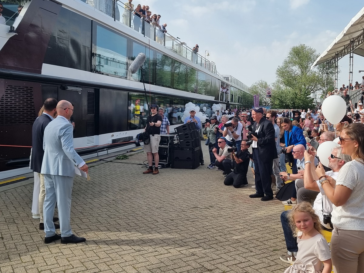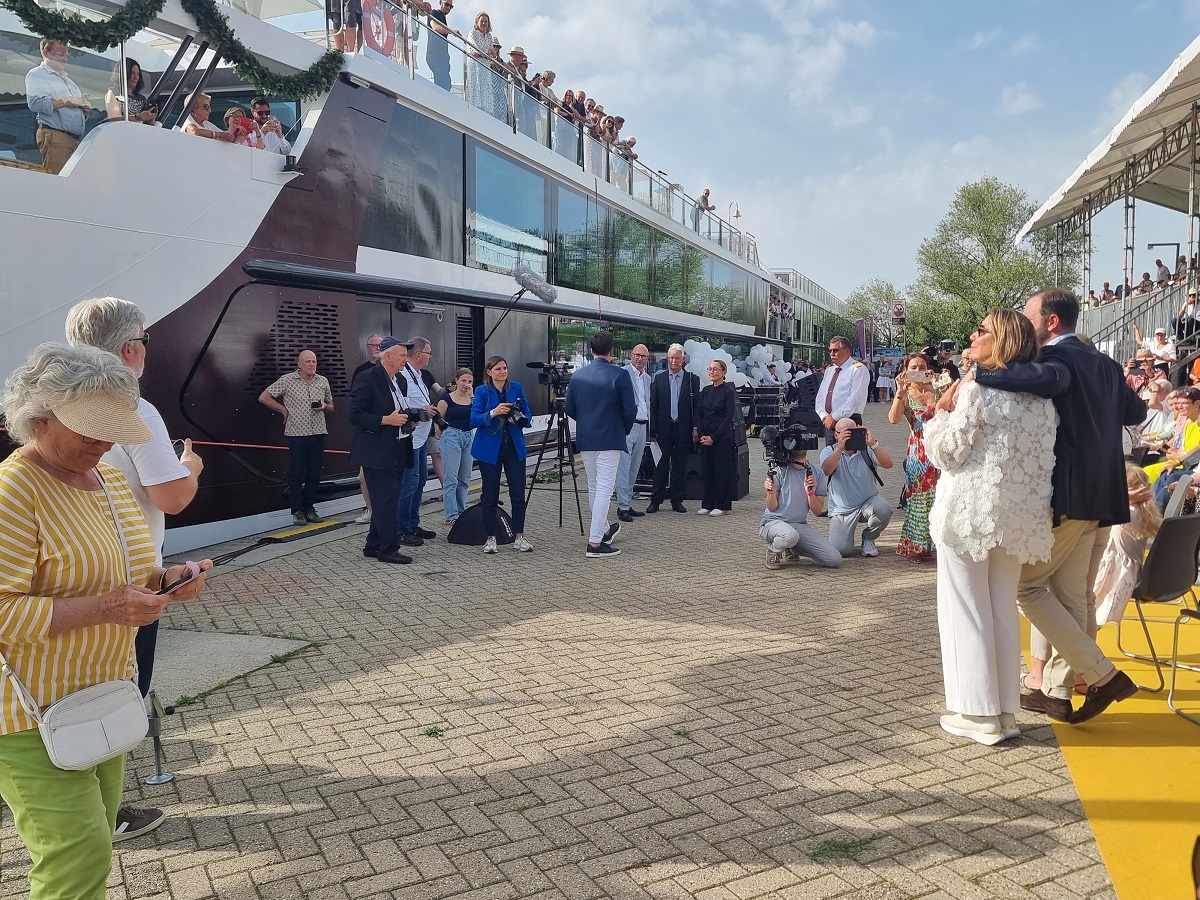 Die feierliche Schiffstaufe der Excellence Crown fand am Anleger Klybeck in Basel statt. Über 650 geladene Gäste nahmen an diesem besonderen Anlass teil, bei dem das neue, umweltfreundliche Flussschiff offiziell in Dienst gestellt wurde. Die bekannte Schweizer Starköchin Tanja Grandits übernahm die Rolle der Taufpatin und zerschlug traditionell eine Champagnerflasche am Bug des Schiffes.