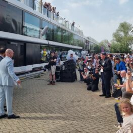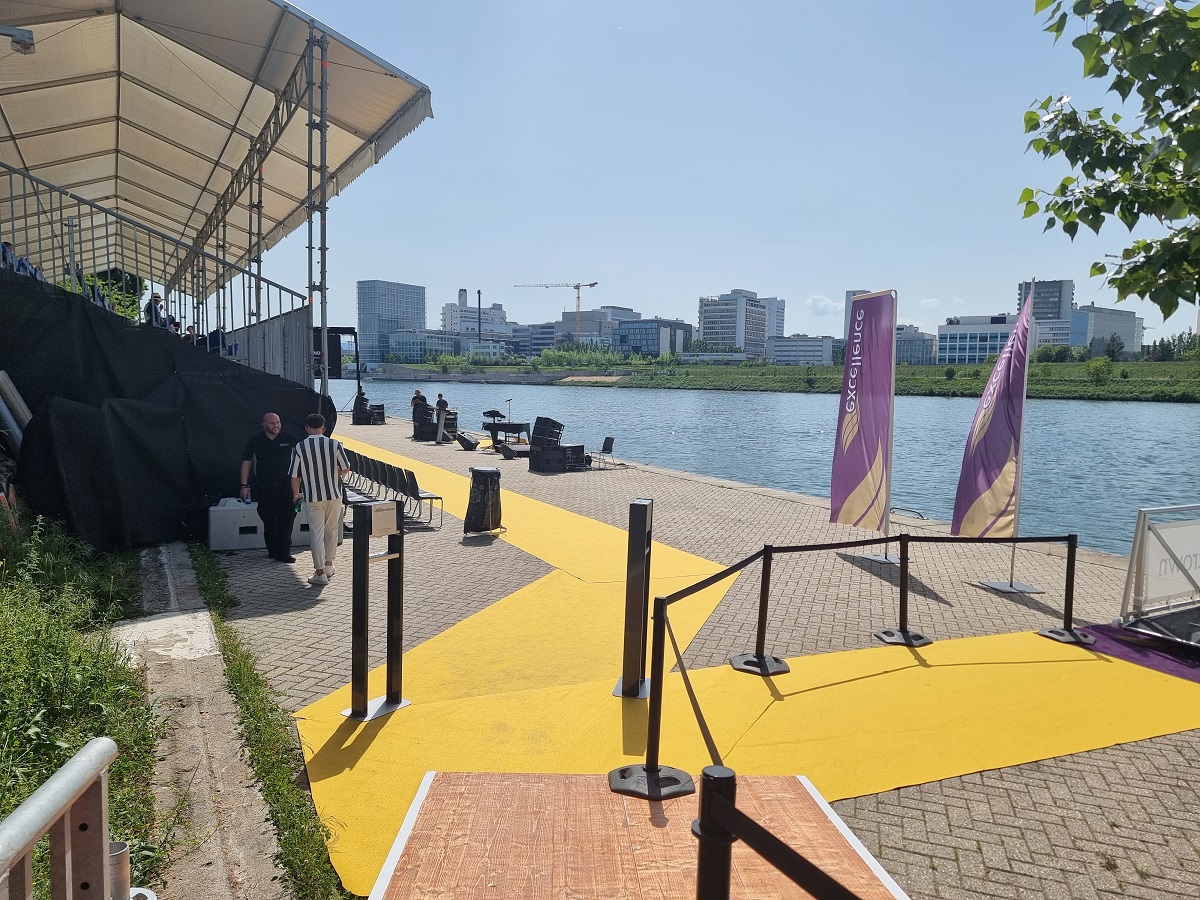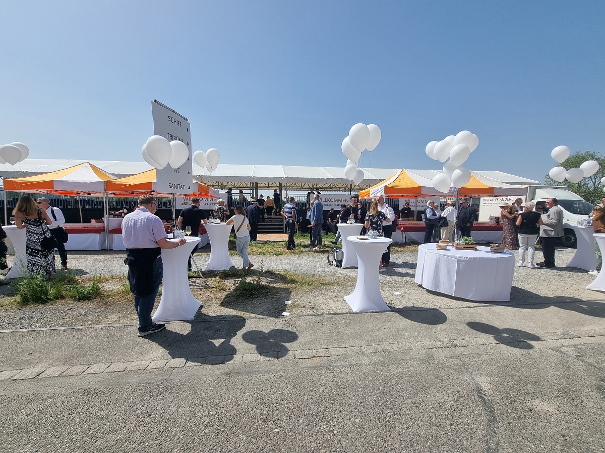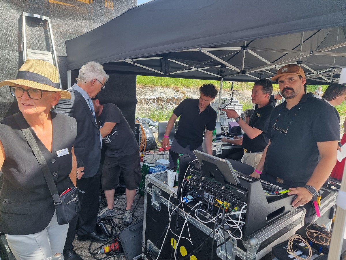Wir durften bei diesem besonderen Ereignis sämtliche technischen Leistungen sowie wichtige organisatorische Aufgaben übernehmen wie die Organisation der Tribüne, die Koordination der restlichen Eventbauten, die Stromversorgungslösungen und die Abstimmungen mit den Hafenbehörden sowie diverse andere Aufgaben und trugen so maßgeblich zum reibungslosen Ablauf der Feier bei.“